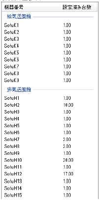 また、選択された送風機の設置済み累計台数が、チェック用として表示されます。