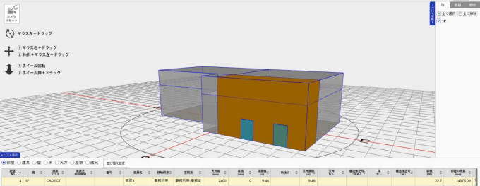 建物概要 ~ 水平部材 で設定した建物情報を 3D で表示します。