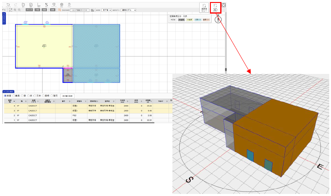 画面右上の「3D」ボタンをクリックして、3D を表示します。