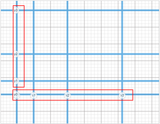 通り芯の軸(下記画像のx0,1,2,3,4、y0,1,2,3,4)をクリックすると選択状態となります。