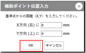 補助ポイント位置入力ダイアログに基準となる原点からの距離を入力し、「OK」ボタンをクリックします。