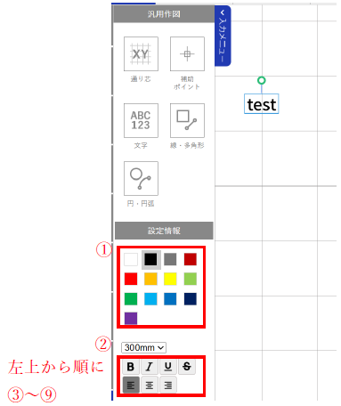 汎用作図設定から、編集領域に作図する文字の入力をします。