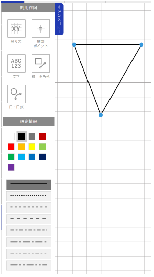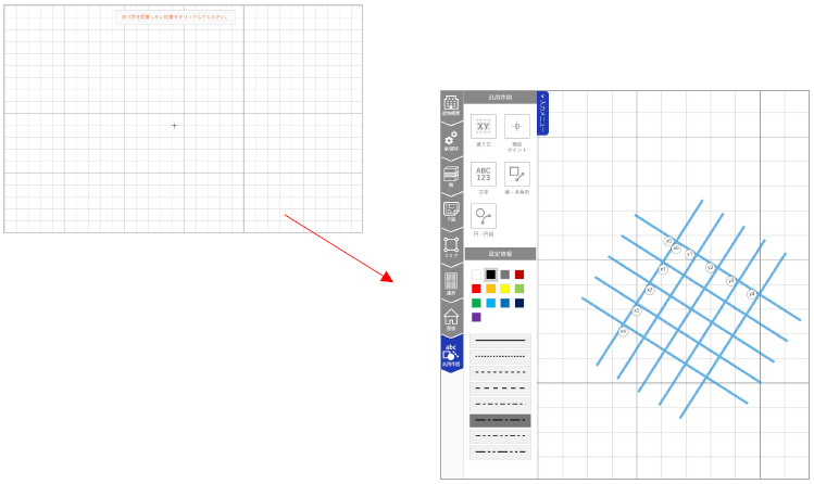 線もしくは矩形や多角形を描画が確定すると、左メニューに色、線種の選択メニューが表示されますので、選択して適用します。