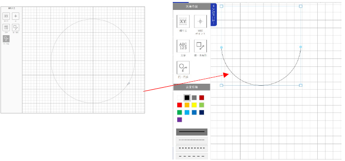円弧を作成する場合は、円と同様に、編集領域内をクリックし、円の大きさを決めます。