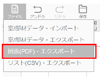 図面(PDF)・エクスポート機能は保存が行われた時点の平面図をPDFデータとして出力します。