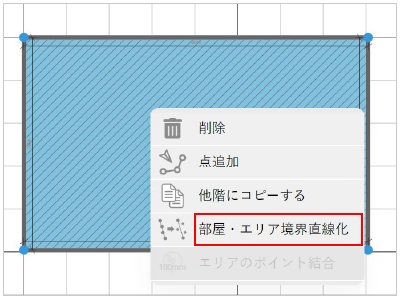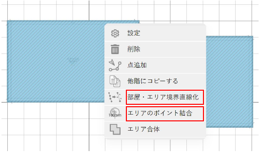 また、複数のエリアを選択した場合、部屋・エリア境界直線化とエリアのポイント結合を行うことができます。
