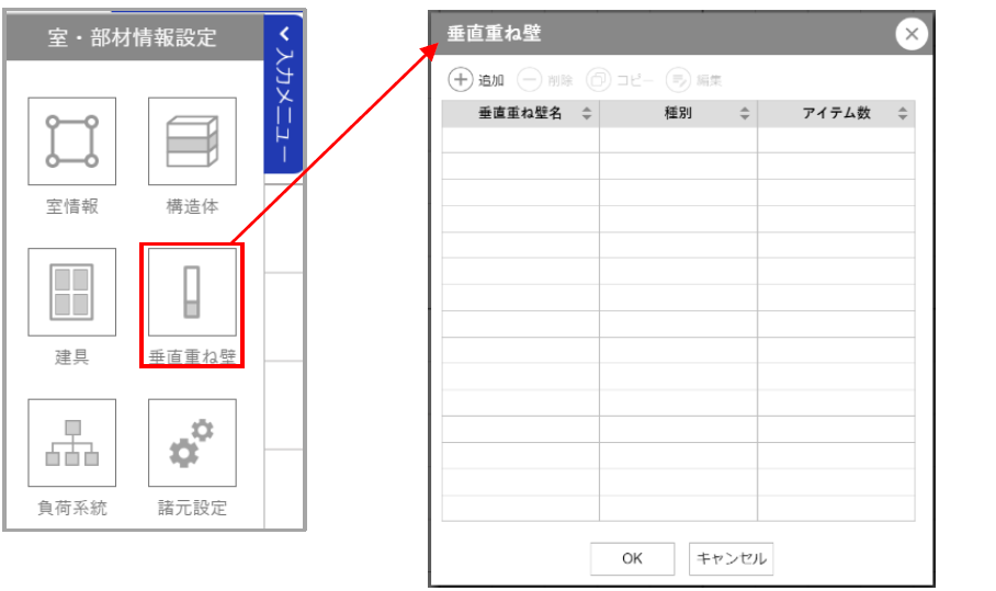 壁の構造体の設定がない場合は、垂直重ね壁のメニューは開けません。