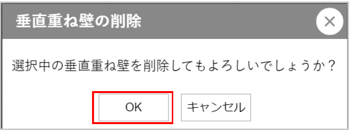 「削除」ボタンをクリックし、垂直重ね壁の削除ダイアログを開きます。
