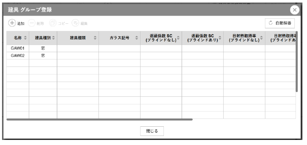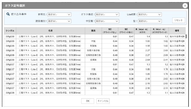 Revitから取り込んだ時など、建具が大量になる場合、一つ一つ建具種類、ガラス記号、ガラス性能値を設定する時間を短縮することができます。