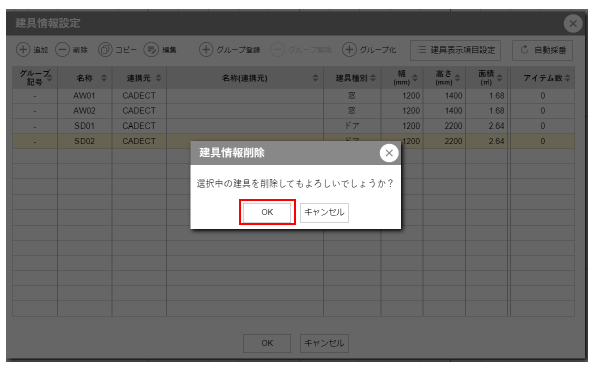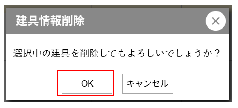 「削除」ボタンをクリックすると、建具情報削除ダイアログが表示されます。