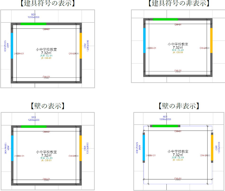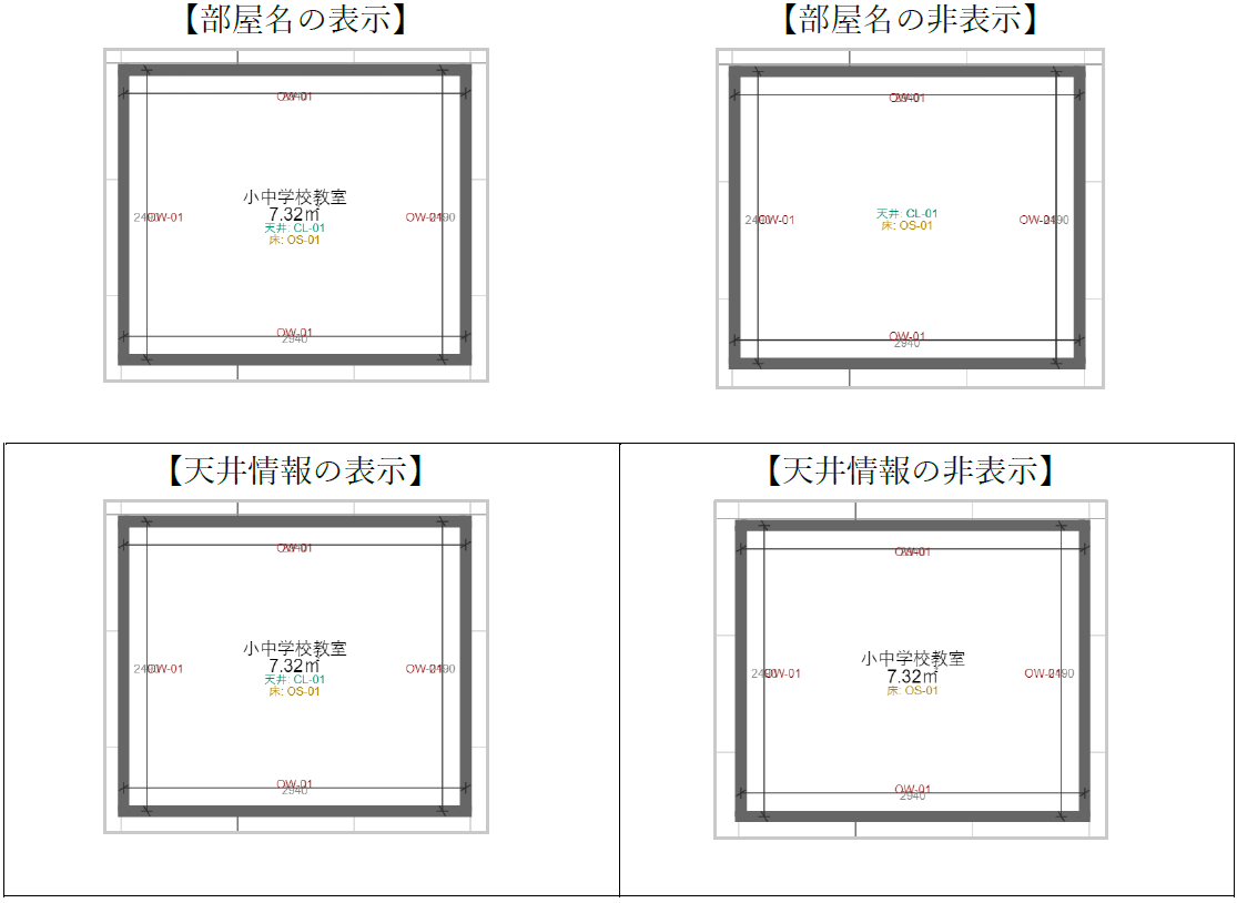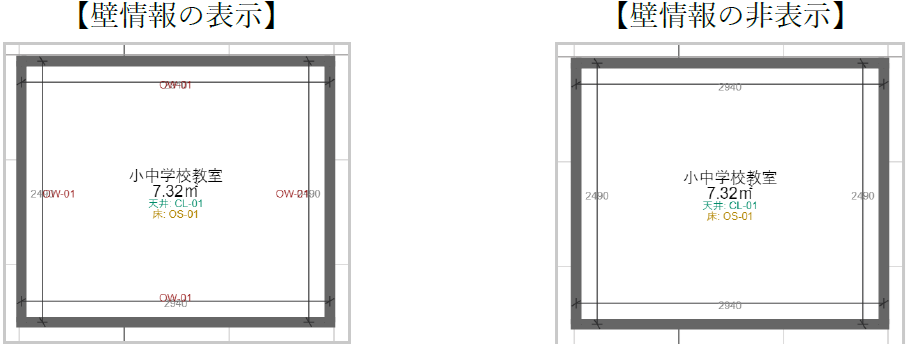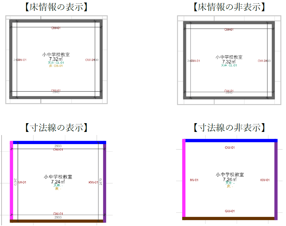 | ⑥ | 表示設定(部屋) | 部屋領域の表示を透明、半透明、不透明の3段階で設定できます。 |