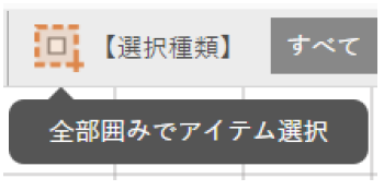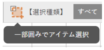 | ⑦ | 選択方法/選択対象 (すべて、エリア、建具、壁、汎用) | アイテムを選択する際、一部囲み、もしくは全部囲みのいずれかが選択できます。 また、下記選択種類の中から選択対象アイテムを指定できます。 ・一部囲み…アイテムの一部を囲むとアイテムが選択できます。 ![]() ・全部囲み…アイテムのすべてを囲むとアイテムが選択できます。 ![]() 【選択種類】 ・すべて…選択制限がなく、エリア、建具、壁、屋根、汎用、全て選択できます。エリアを囲むように選択した場合はエリア選択が優先となり、壁は選択されません。 ・エリア…エリアのみ選択可能となります。 ・建具…建具のみ選択可能となります。 ・壁…壁のみ選択可能となります。 ・汎用…汎用作図のみ選択可能となります。 |