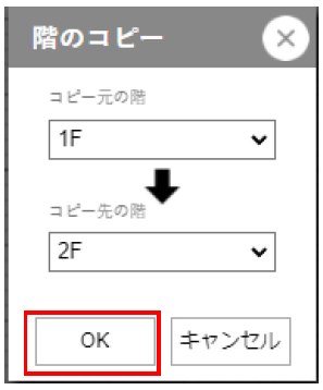 コピー元とコピー先の階を選択して、「OK」ボタンをクリックします。