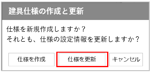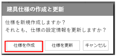 幅を調節すると、「建具仕様の作成と更新」ダイアログが表示されます。