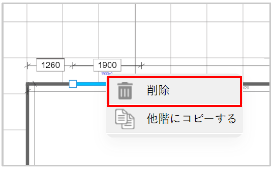 建具の右、もしくは左の水色の四角を変更したい長さまでドラッグします。