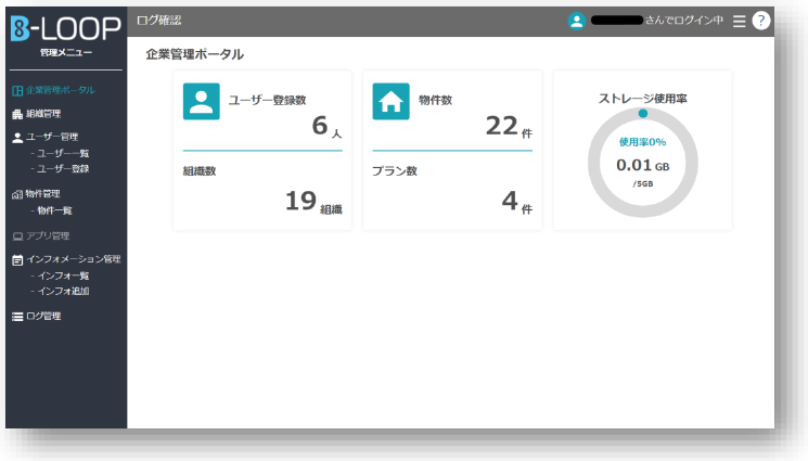 企業管理Webでは、ご利用されているユーザーや物件を扱うB-LOOPポータルのご利用状況が確認できます。