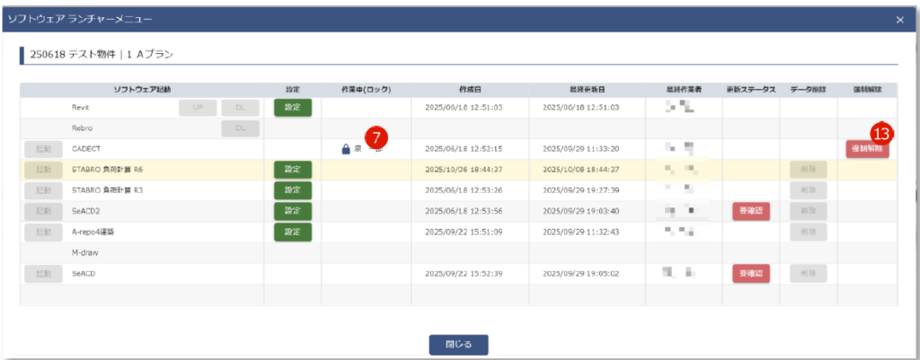 RevitまたはCADECTの作業中にこのボタンを押してしまうと、ロックが解除され作業したデータが保存できなくなります。