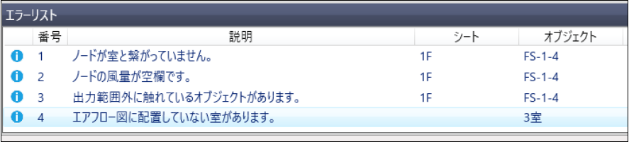 全てのシートの給気量合計(換気口ノードから、換気機器ノードや室ノードに繋がる風量の合計)及び、排気量合計(換気機器ノードや室ノードから、換気口ノードに繋がる風量の合計)を表示します。