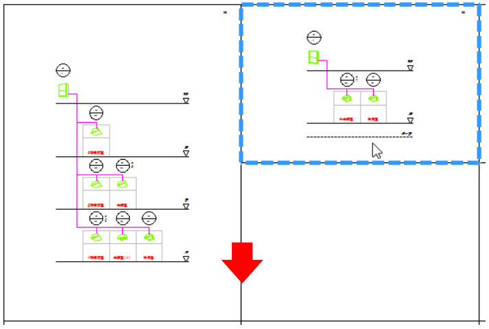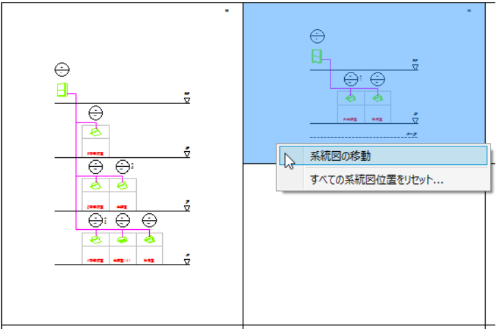 CAD 出力プレビューで系統の印刷位置を変更することができます。