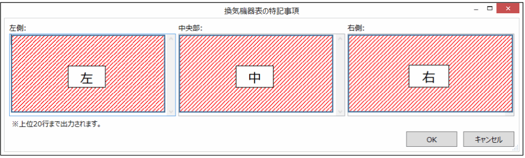 ・「換気機器表の特記事項」ダイアログが表示されます。