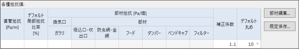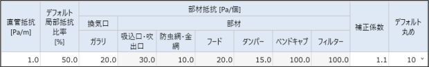 部材抵抗[Pa] = 部材数[個] ×部材抵抗[Pa/個]※ … 小数第二位切り上げ