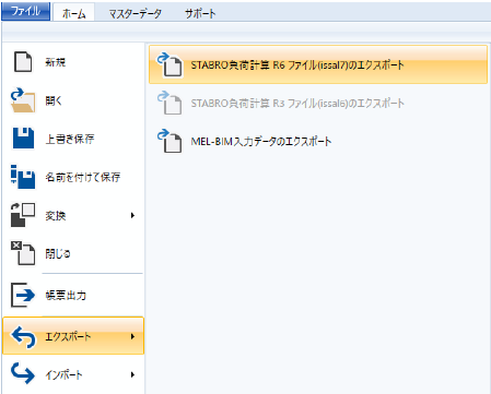 STABRO負荷計算ファイルをエクスポートするには、[ファイル]-[エクスポート]を行います。