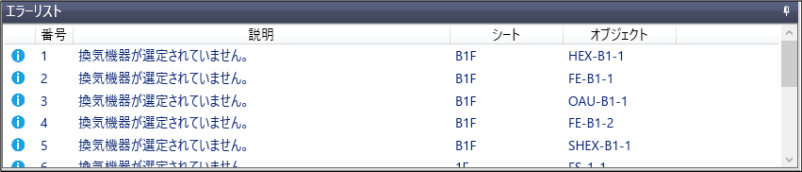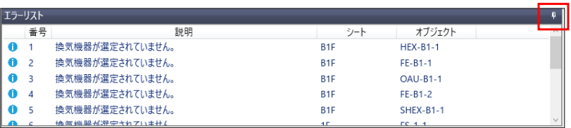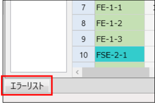 再度、エラーリストを表示する場合は、エラーリストタブを押すとエラーリストが表示されます。