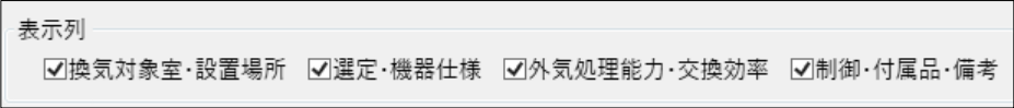 ※Ver.2.0.280から、風量列、機外静圧列、電動機出力列が、給気、排気別に表示されます。