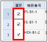 再選定したい機器にチェックを入れます。(初期値は全てチェックあり)