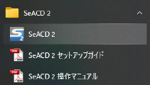 起動方法 《 SeACD2 》 操作マニュアル |起動方法| 以下の方法で、本ソフトを起動します。デスクトップの「SeACD 2」を開く、または、スタートメニューの下記の「SeACD 2」をクリックします。 【SeACD2】目次に戻る