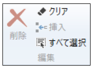 シート行や選択オブジェクトの削除、セルのクリア、行挿入、すべて選択を行います。