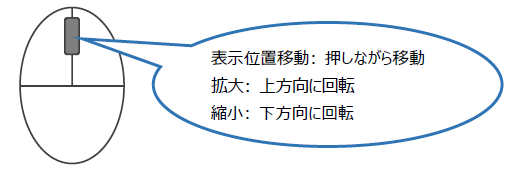 操作方法を変更するには、[ファイル]-[オプション]-[図形画面]-[マウスホイール操作]で「画面スクロール」を選択します。