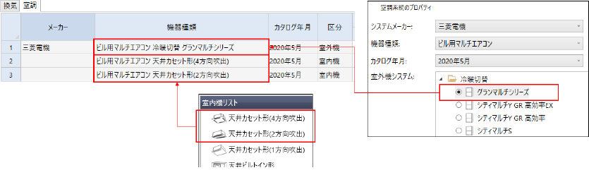 ・マルチ型の室内機 … 「マスターデータ」-「マルチ型空調機器 – ユーザー機器」画面の「室内機タブ」
