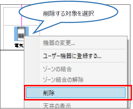 ・削除対象を選択し[右クリック]-[削除]を選択する