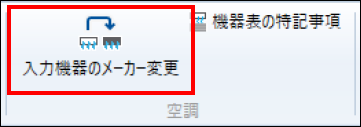 リボンの「空調」グループ内の[入力機器のメーカー変更]ボタンを選択すると変更画面が表示されます。