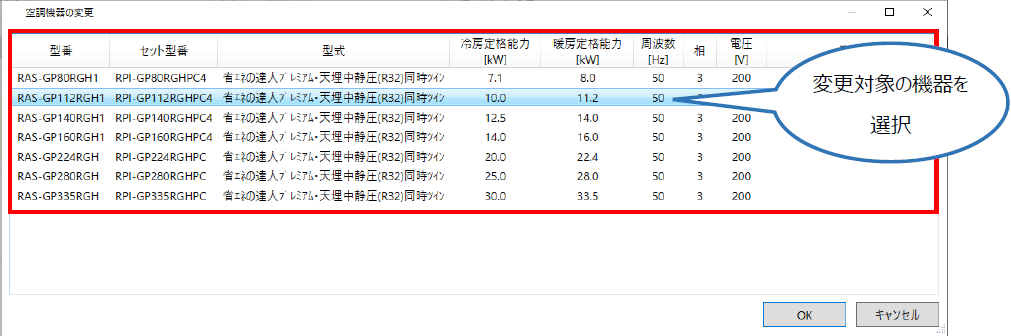 ・同等の能力の機器がない場合、変更前の機器の1ランク上の能力の機器で選定します。