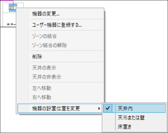 機器を追加する場合は同様に室の点線内にドラッグ&ドロップします。