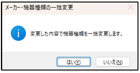 「OK」ボタンを押して、確認メッセージで「はい」を選択すると[変更後の機器]の設定内容で一括変更が行われます。
