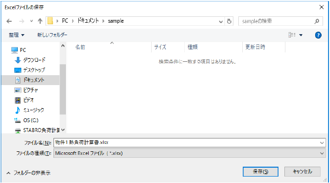 [Excelファイルの保存]ダイアログを表示します。([Excel出力…]ボタン参照)