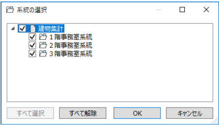 「選択」は、[系統の選択]ウィンドウで出力対象の系統を選択できます。