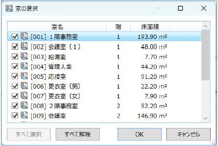 「選択」は、[室の選択]ウィンドウで出力対象の室を選択できます。