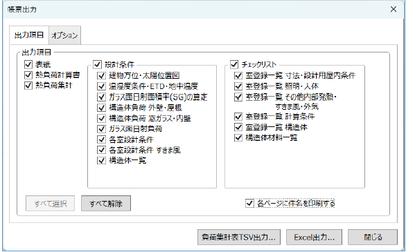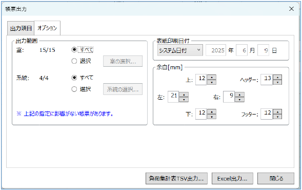 熱負荷集計表の出力項目をタブ区切りテキスト(TSV)で出力します。