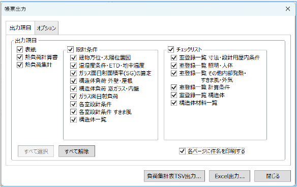「設計条件」枠内の帳票すべてを選択または非選択にします。