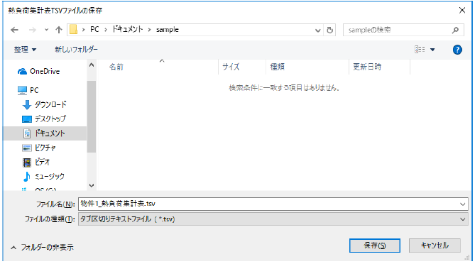 [熱負荷集計表TSVファイルの保存]ダイアログを表示します。([負荷集計表TSV出力…]ボタン参照)