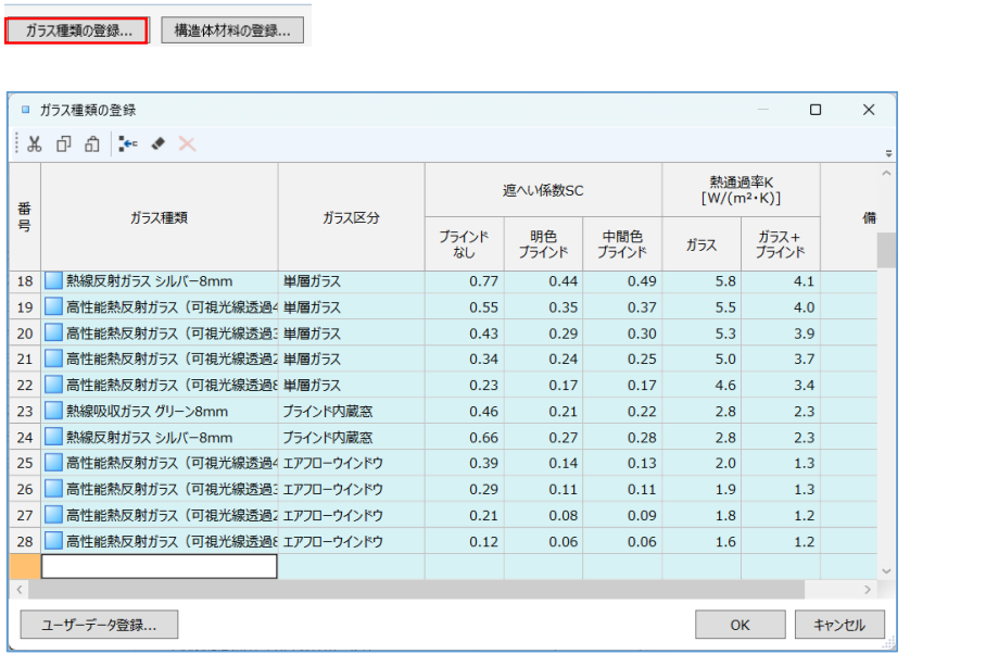 |ガラス種類の登録ウィンドウ|