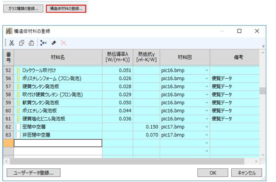 このデータは、同作業ページ-[外壁、屋根、ピロティ床、内壁、天井・床、地中壁、土間床]タブの「構成材料」で選択します。