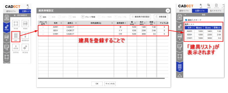 CADECTで壁の構造体記号を設定していない場合、各ソフトへ壁が連携されません。それにより壁に配置した建具も連携されませんのでご注意ください。