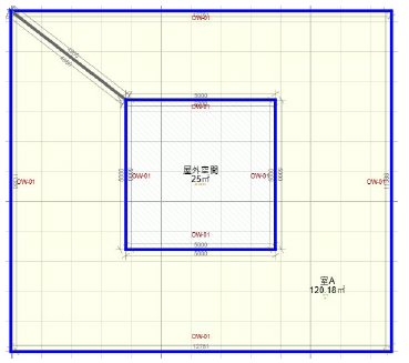 「屋外空間」は屋外として扱われるため、隣接するエリアの壁は外壁が正しいと認識されます。